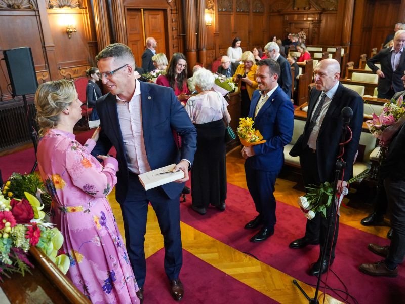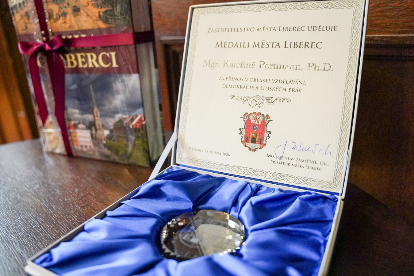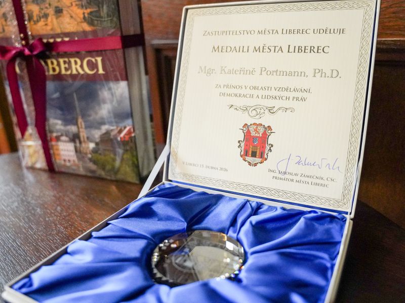 Ve středu 15. dubna převzali hned tři naši vyučující významná ocenění za jejich mimořádné výzkumné, pedagogické i osvětové výkony! První oceněnou se stala dr. Anna Habánová, která v dopoledních hodinách v obřadní síni liberecké radnice získala třetí místo v soutěži Kulturní počin roku 2025 za svůj výstavní a publikační projekt Argonauti ideálu. Liberecká výtvarná scéna první poloviny 20. století. Ve stejných prostorách se pak v odpoledním čase konalo oficiální udělení Medaile města Liberce dr. Kateřině Portmann za dlouhodobý přínos v oblasti vzdělávání, demokracie a lidských práv. Ocenění převzala z rukou primátora města Jaroslava Zámečníka. V tutéž dobu na zasedání Česko-slovenské komise historiků v Nitře převzal prof. Jan Rychlík Plaketu Slovenskej historickej spoločnosti za "výnimočný prínos k výskumu slovenských dejín v zahraničí".