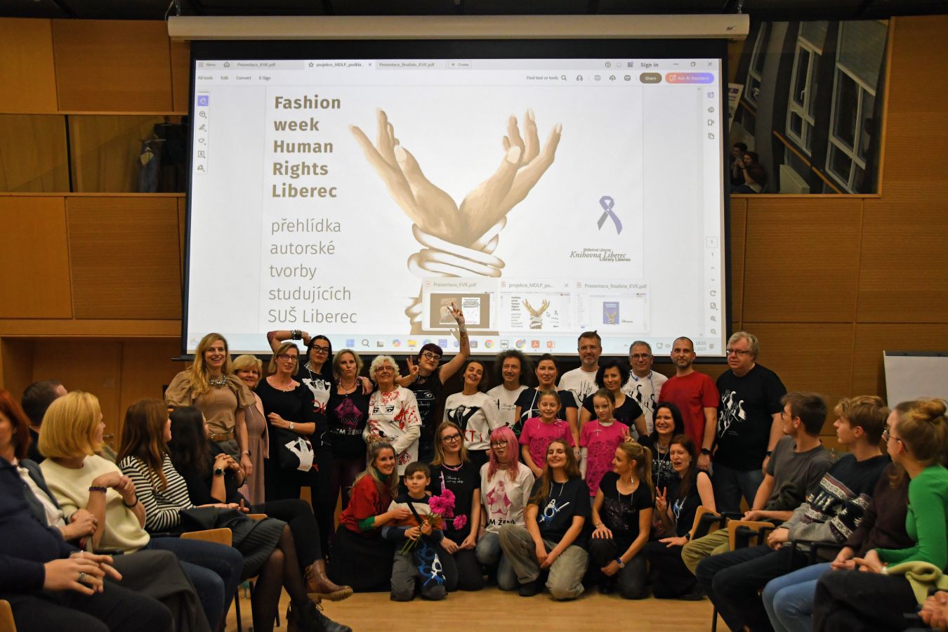 Dále program zahrnoval promítání dokumentárního snímku Potížistky režisérky Bibiany Beňové, představení výstavy Nitky vzpomínek v podání autorky Iriny Ostrovské z organizace Memorial a v neposlední řadě vyhlášení soutěže o grafický vizutál dne lidských práv a přehlídky autorské tvorby studentek a studentů Střední umělecké školy Liberec. Tradiční součástí připomínání Mezinárodního dne lidských práv pak bylo veřejné čtení jmen soudně perzekvovaných obyvatel Liberecka komunistickou státní mocí v 50. letech 20. století, které zahájila hlavní organizátorka akce dr. Kateřina Portmann. Kromě odpolední veřejné části programu proběhl také dopolední blok přednášek pro základní a střední školy.