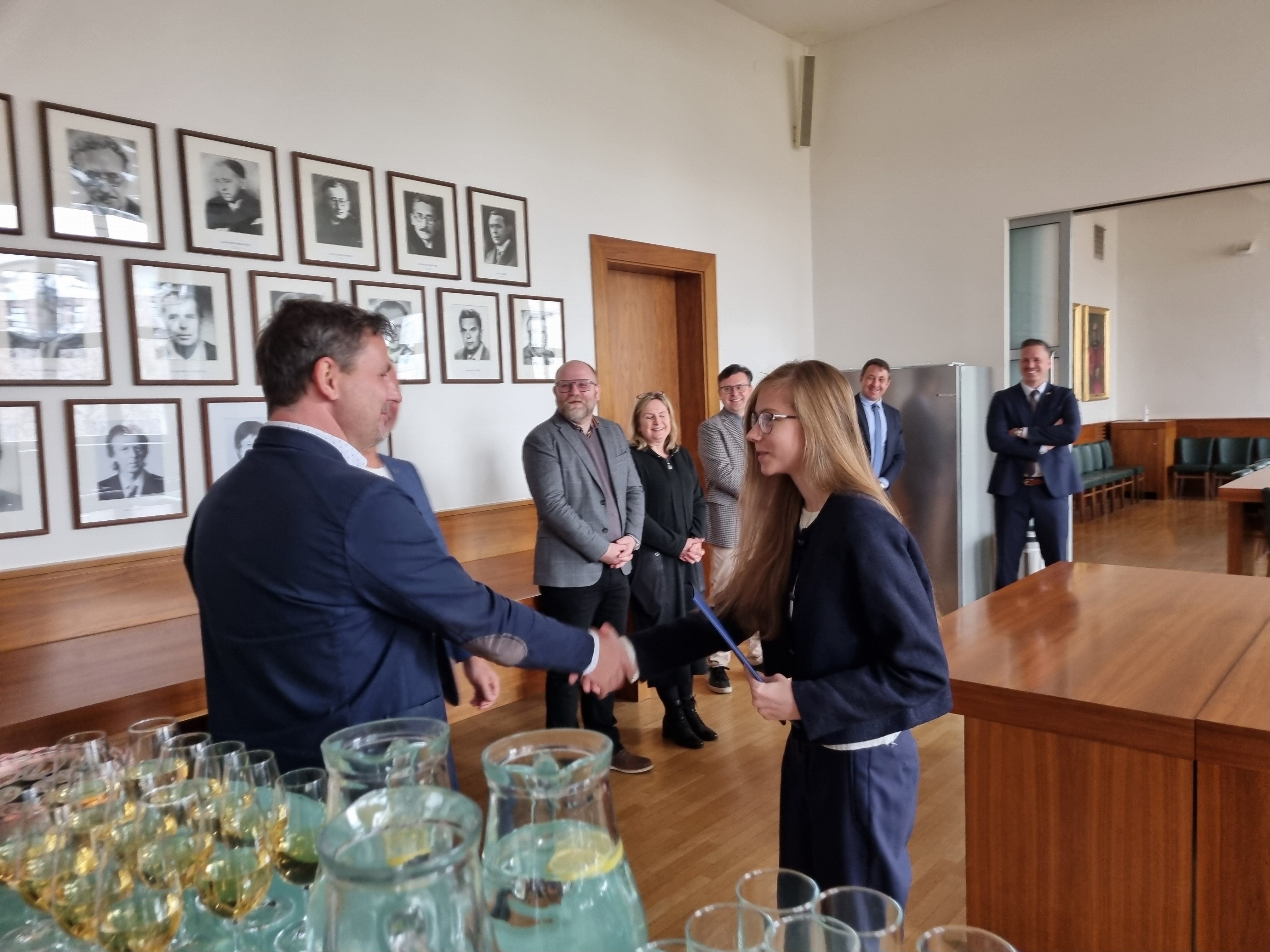 Naše doktorandka Zuzana Cilerová převzala 19. listopadu ocenění za 3. místo v rámci vyhlášení Ceny Ius et Societas, udělované Masarykovou univerzitou v Brně. Ocenění obdržela za svoji práci s názvem Spravedlnost, pomsta nebo státní politika? Problematika poválečné retribuce v oblastech bývalé Říšské župy Sudety. Gratulujeme!