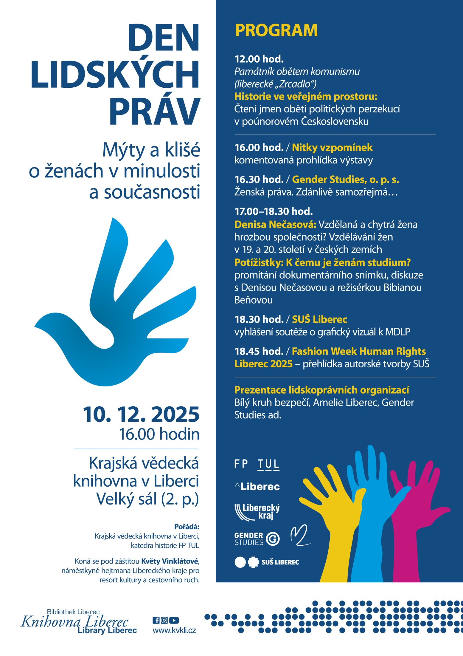 Katedra historie ve spolupráci s Krajskou vědeckou knihovnou v Liberci a Libereckým krajem pořádá již čtvrtý ročník Dne lidských práv, který proběhne 10. prosince 2025.