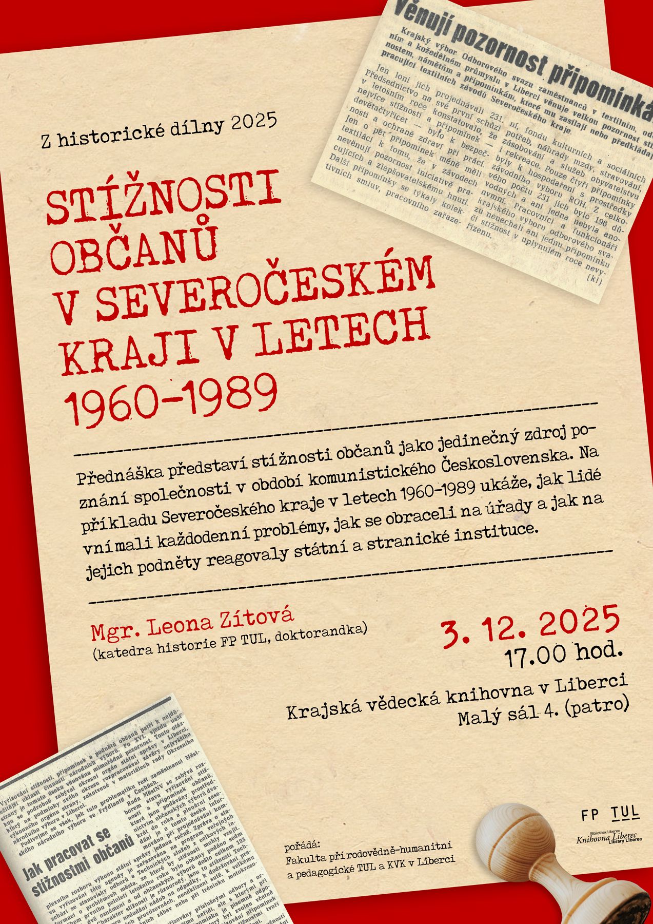 Stížnosti občanů v Severočeském kraji v letech 1960–1989, přednáška v KVKLI 3. 12. 2025