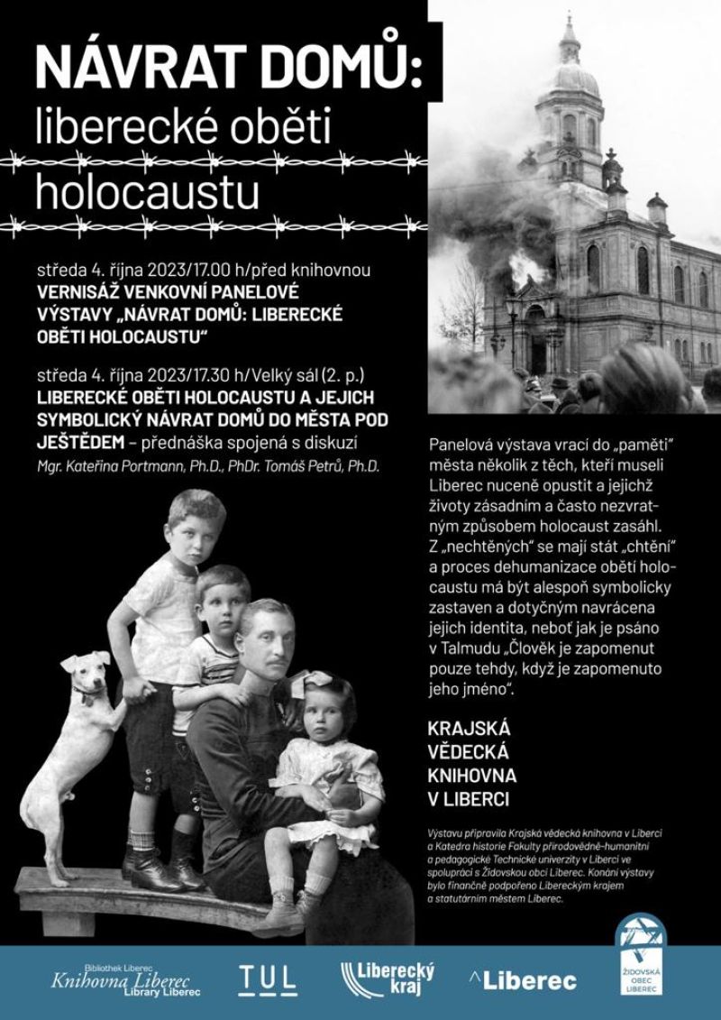 Vernisáž venkovní panelové výstavy "Návrat domů: Liberecké oběti holocaustu" 4.10.2023 od 17.00 v KVK